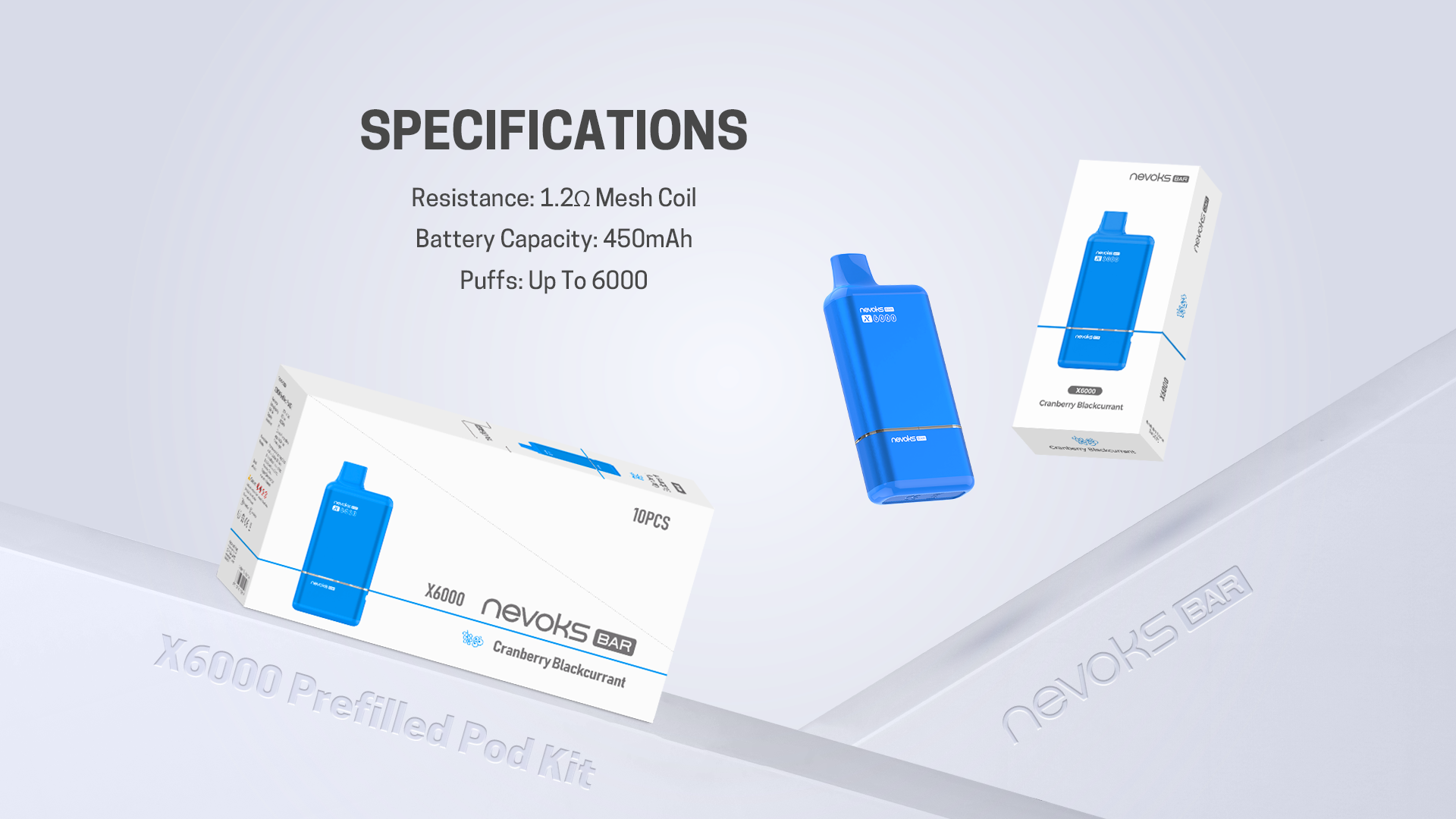 Nevoks Bar X6000, with the ultra-thin and slim design, is a 6000 puffs prefilled pod kit.