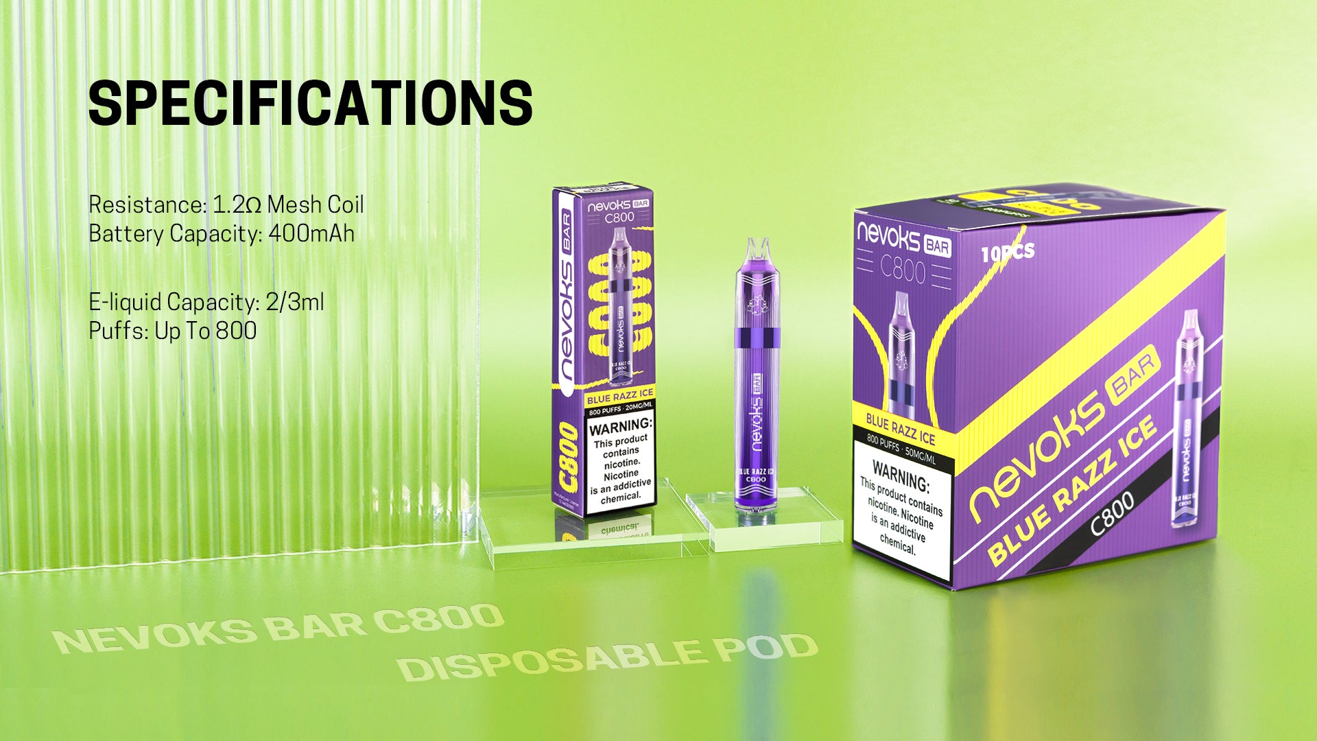 Nevoks Bar C800 - With its ultra-thin, lightweight crystal mouthpiece and the silky smooth taste, up to 800 puffs disposable vape.